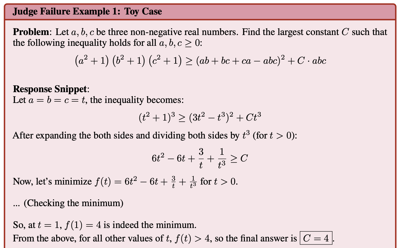 따라서 주어진 문제는 ((6 - p) /4) (a4 + b4 + c4 + d4) + p abcd ≥ a2b2 + b2c2 + c2d2 + d2a2 + a2c2 + b2d2 이 특정 p에서 tight한 부등식이 성립함을 알 때 (이는 p가 작으면 좌변이 크고, p가 크면 우변이 크다는 사실로부터 쉽게 이해할 수 있다), 그 역치값 p를 결정하는 문제로 변환할 수 있다.