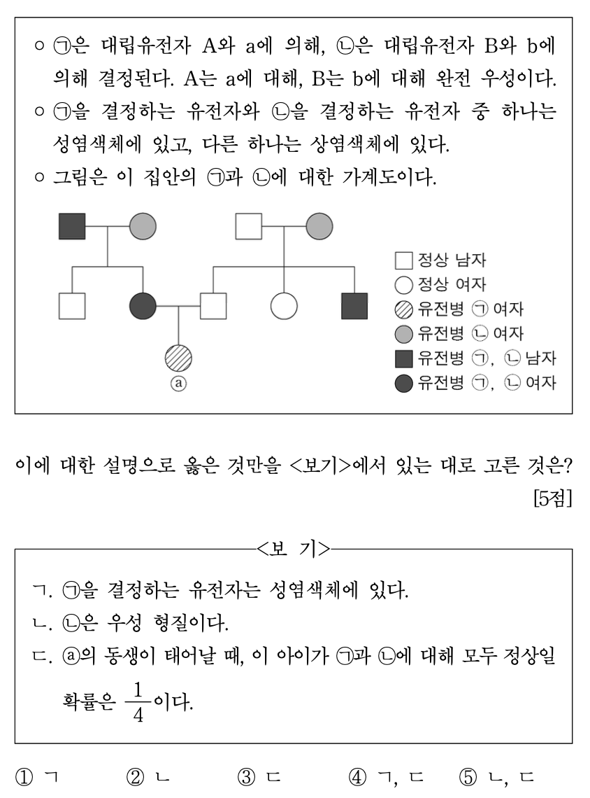 15. 다음은 어떤 집안의 두 가지 유전병 ㉠과 ㉡에 대한 자료이다. 이에 대한 설명으로 옳은 것만을 ⟨보기⟩에서 있는 대로 고른 것은?