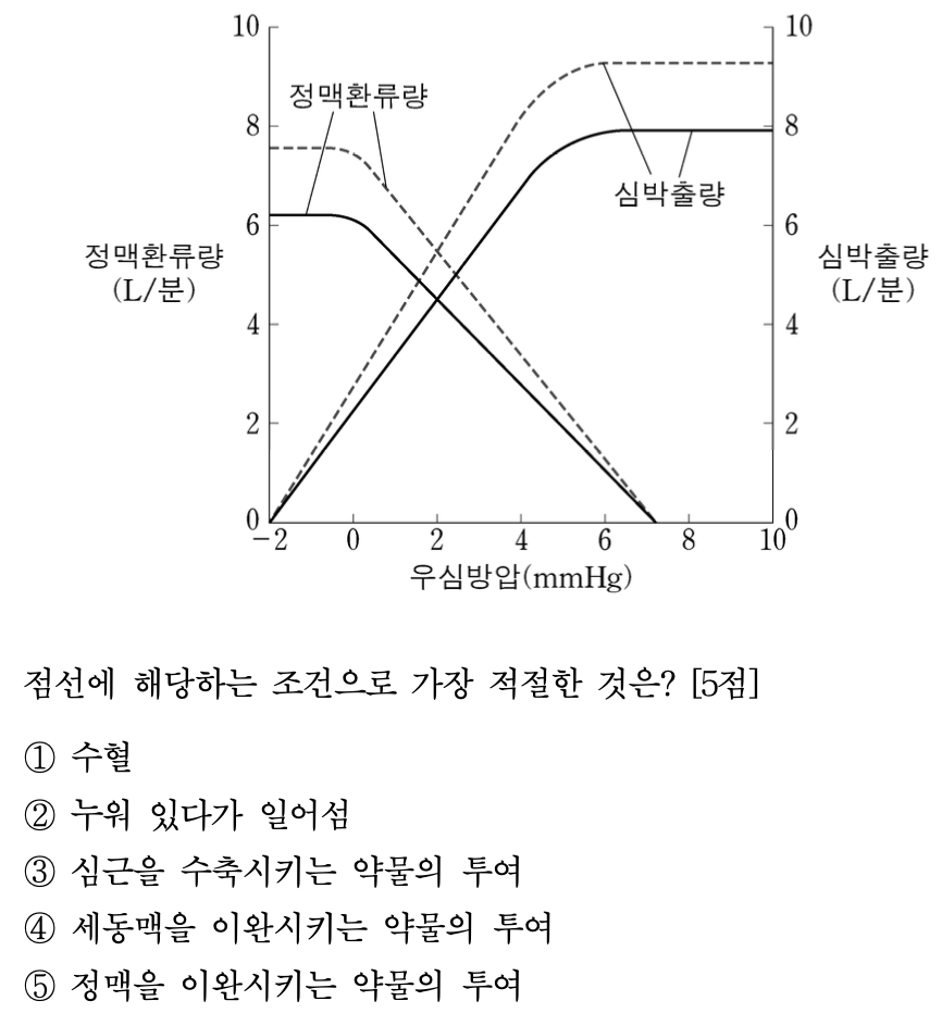 ① 수혈(출혈 보상) : 심박출량 ↑, 정맥환류량 ↑