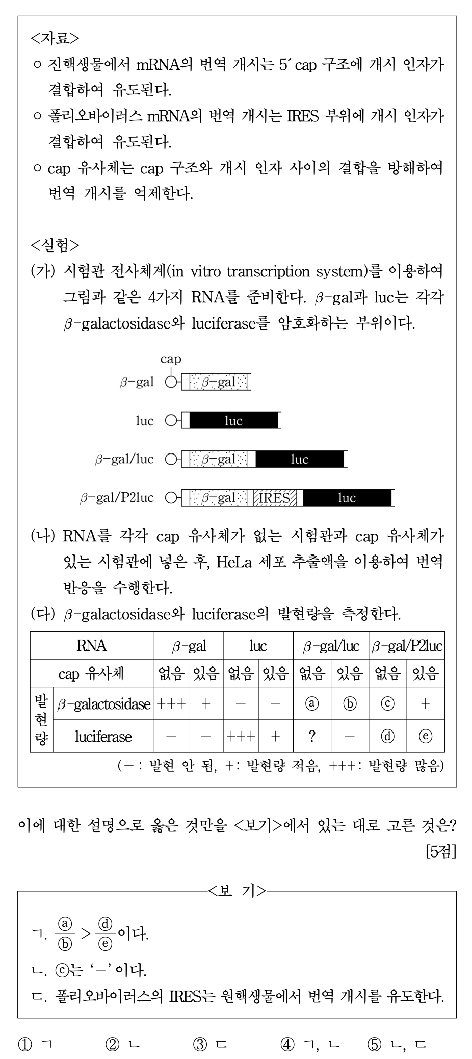 23. 다음은 단백질 번역 개시에 관여하는 요인을 알아본 실험이다. 이에 대한 설명으로 옳은 것만을 ⟨보기⟩에서 있는 대로 고른 것은?