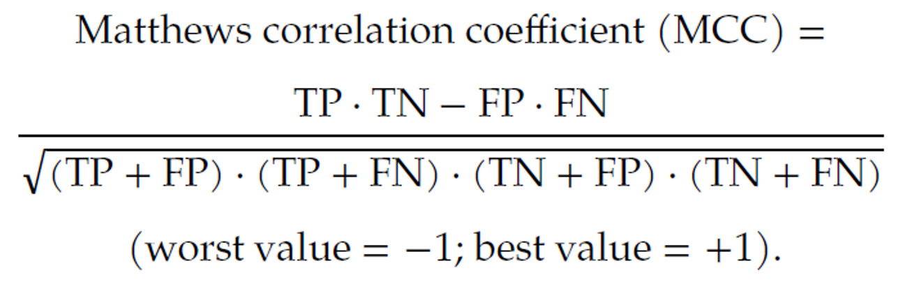 ⑬ Matthew correlation coefficient (MCC)