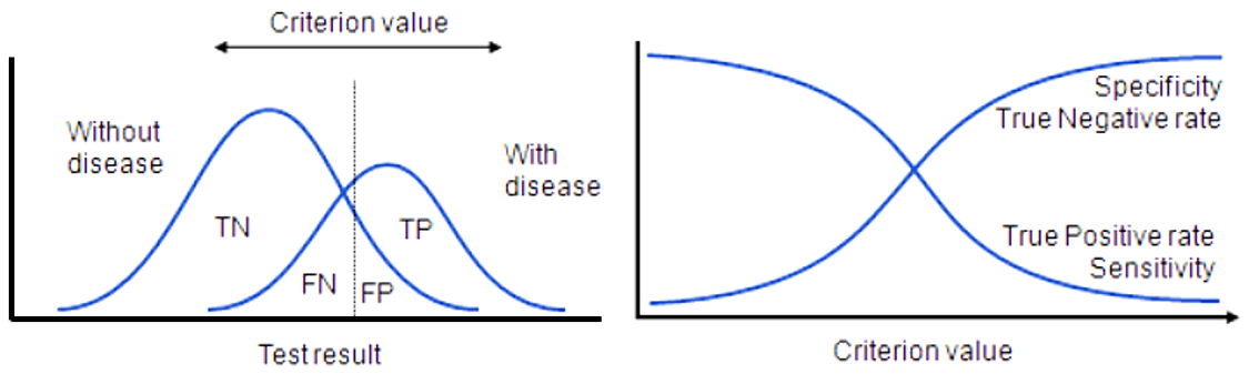 ① 일반적으로 threshold를 조절하면 sensitivity와 specificity가 반대 경향을 보임