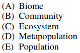 ⑶ metapopulation : a group of spatially separated populations of the same species which interact at some level.