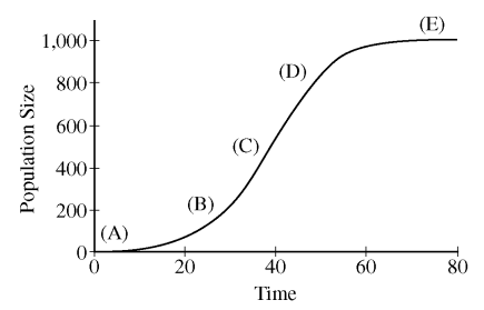 ⑵ The population size reaches the saturation point in E.