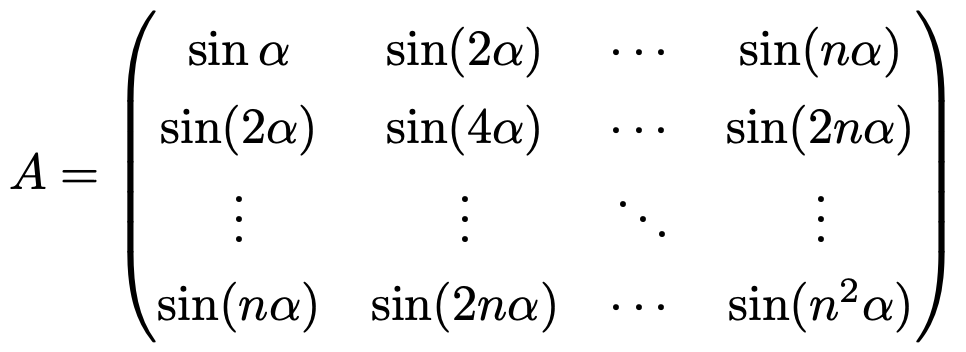 참고로, A의 x행 y열 원소를 Im(exp(ixyα))로 표현하고, Vandermonde 행렬처럼 표현했으나 Im 때문에 행렬식을 구할 수 없었다.