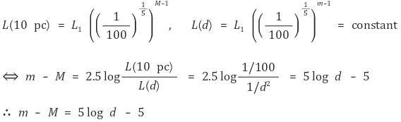 ② 겉보기등급(m)과 절대등급(M)과의 관계 (겉절이 공식)