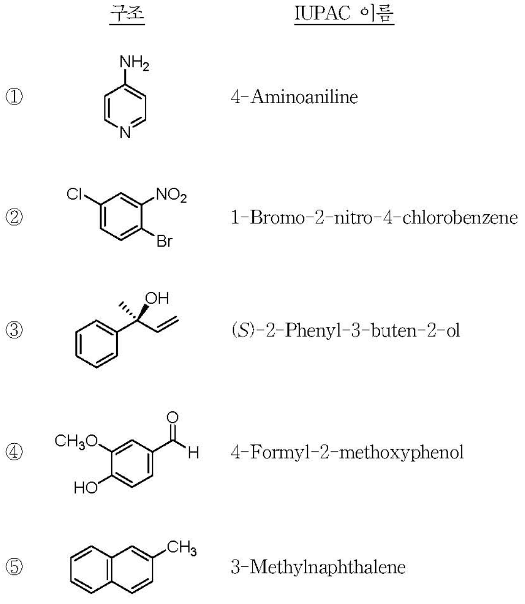 1. 화합물의 구조와 IUPAC 이름이 옳게 짝지어진 것은?