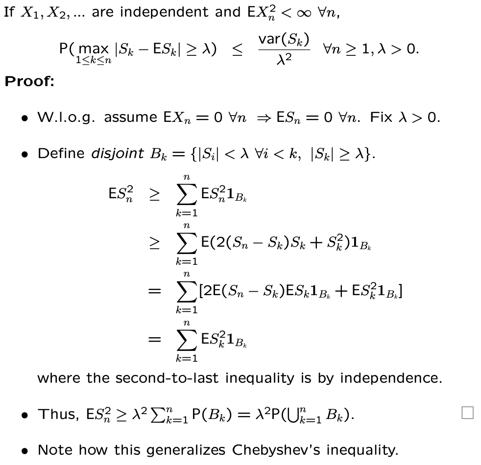 ⑺ Kolmogorov’s maximal inequality