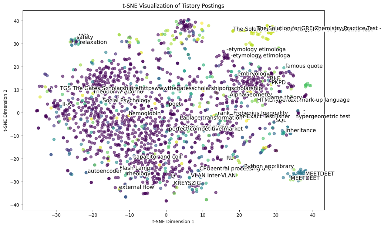 Figure. 16. all-MiniLM-L6-v2를 활용한 포스팅들의 2차원 시각화